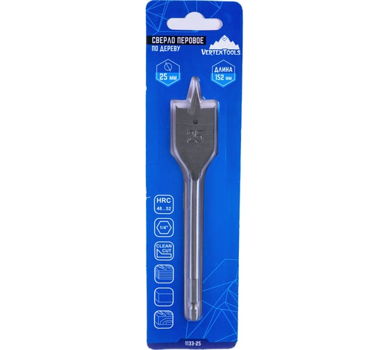 Сверло 25x152мм по дереву перовое шестигранный хвостовик VERTEXTOOLS
